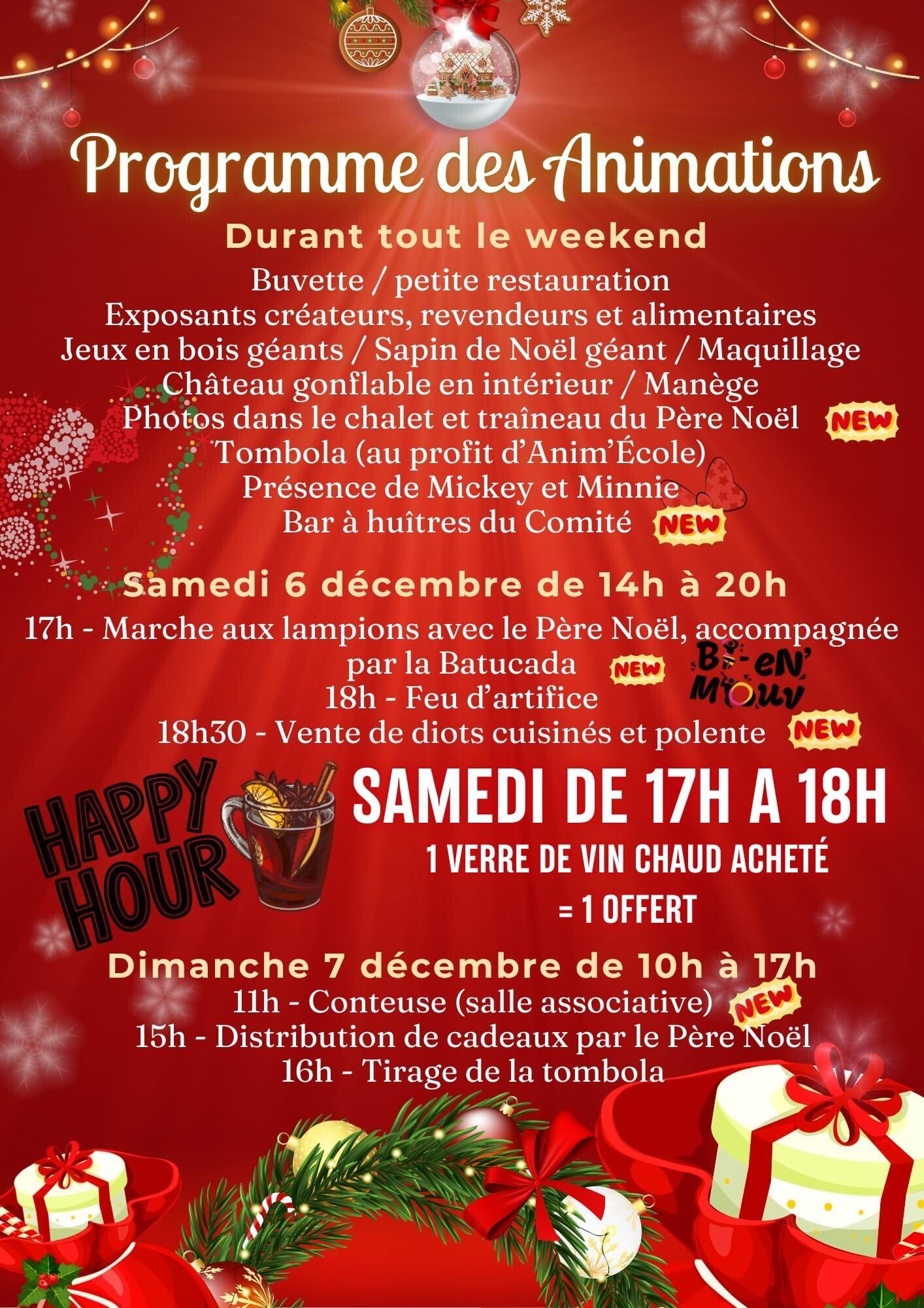 Le Marché de Noël aura lieu cette année les samedi 6 et dimanche 7 décembre 2025 dans une ambiance chaleureuse et festive!