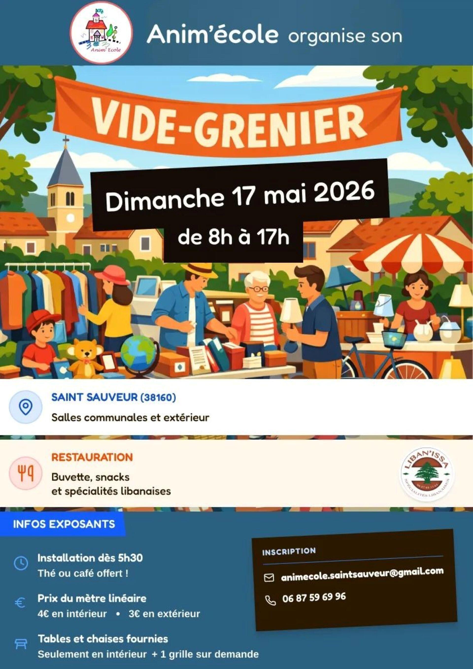 Anim'école organise son vide-grenier avec buvette et restauration sur place, snacks et spécialités libanaises.